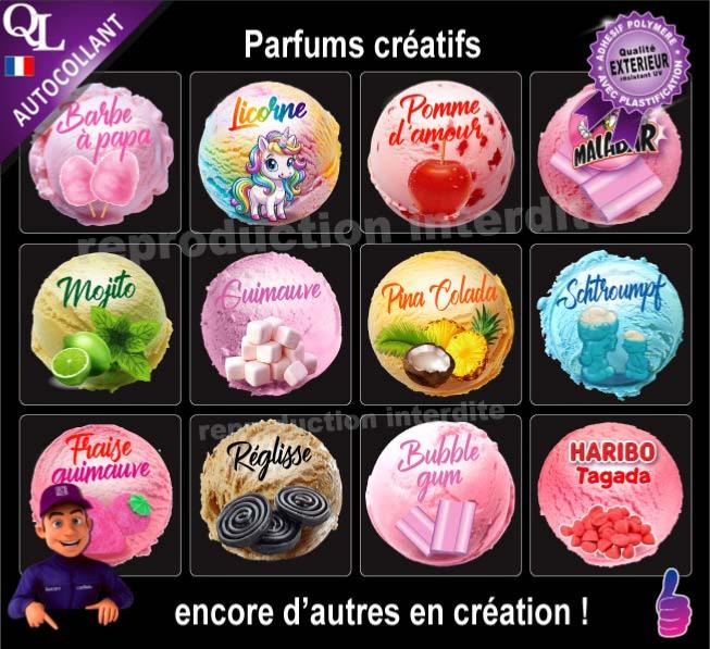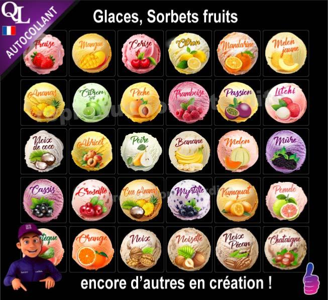 NOUVEAU les étiquettes GLACIER pour indiquer le parfum de vos produits glaces et sorbets sur vos pots,couvercles, machines, vitrines, banque froid, porte-étiquettes, menuboard, pancarte de choix...