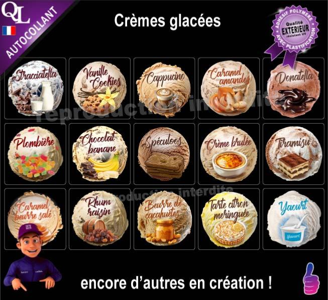 1. Etiquettes adhésives spéciales GLACES GLACIER prestige fond noir