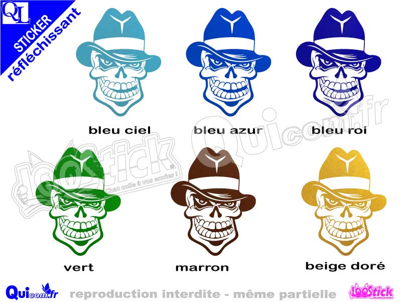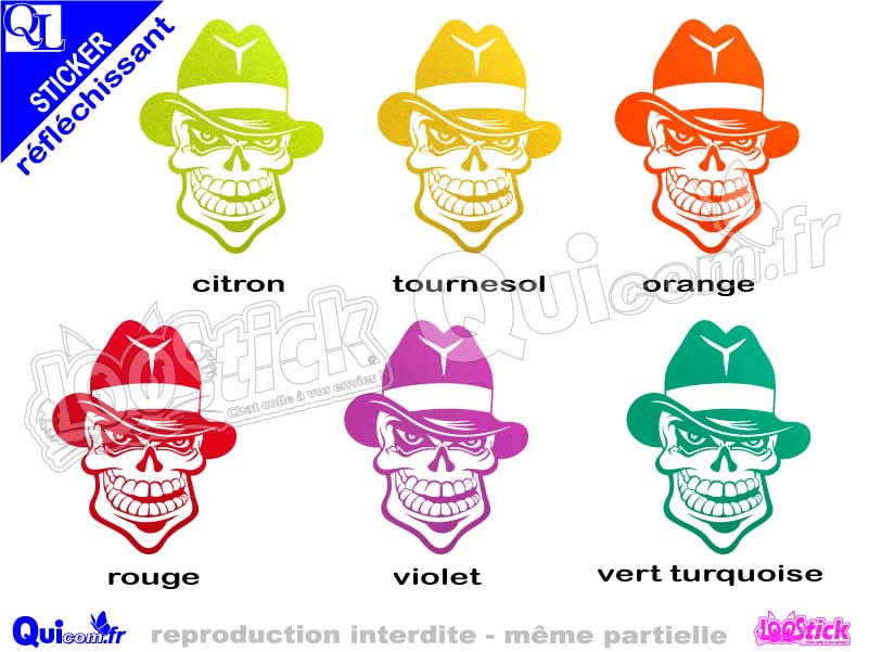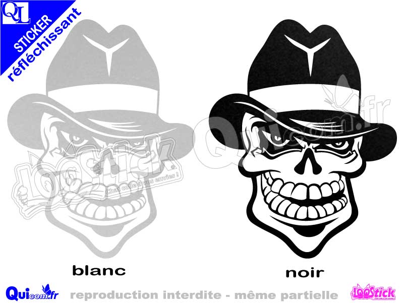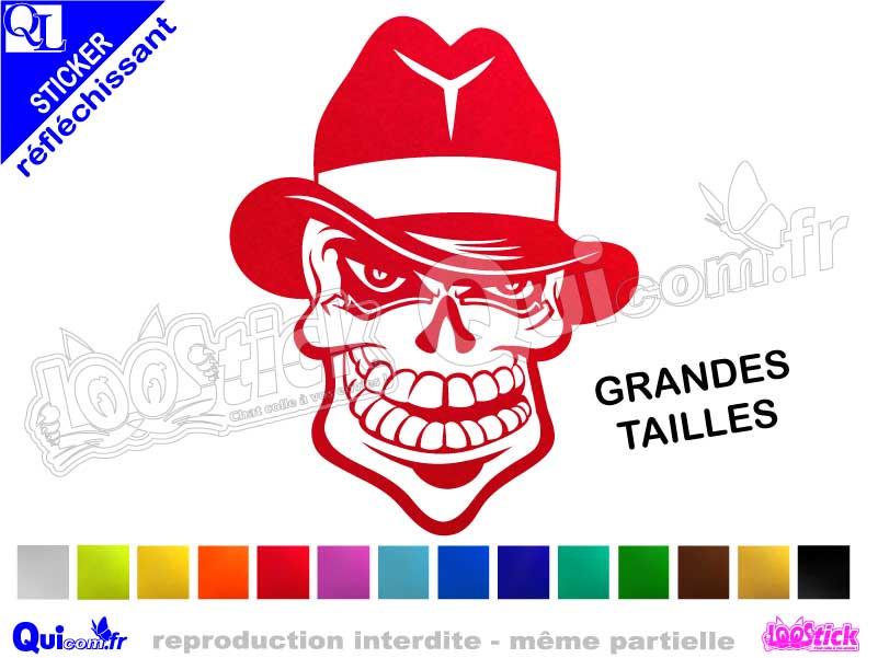 Sticker TETE DE MORT CHAPEAU décor adhésif réfléchissant