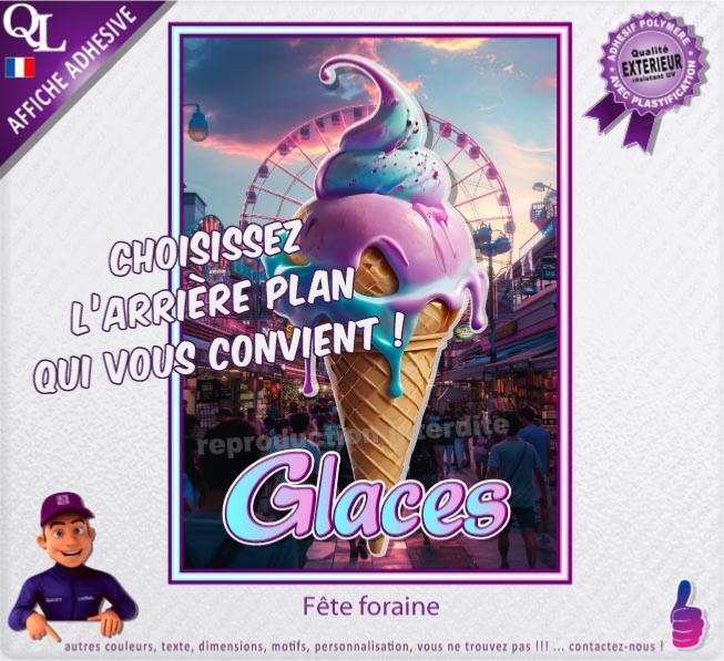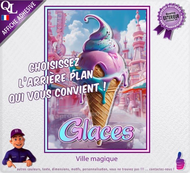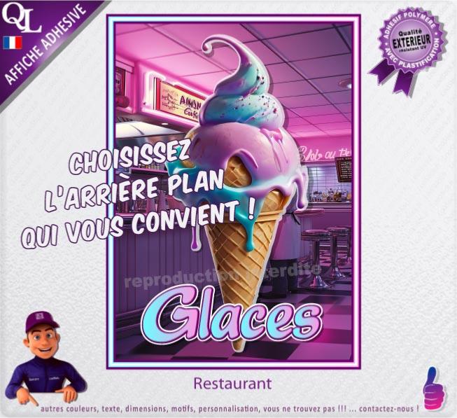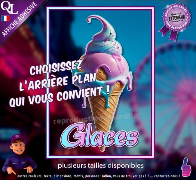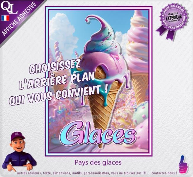 1. Affiche publicitaire adhésive GLACES choisissez le fond qui vous convient