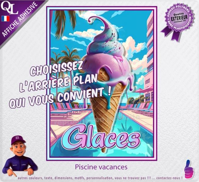 AFFICHE PUB autocollante GLACES - 6 arrière-plans au choix