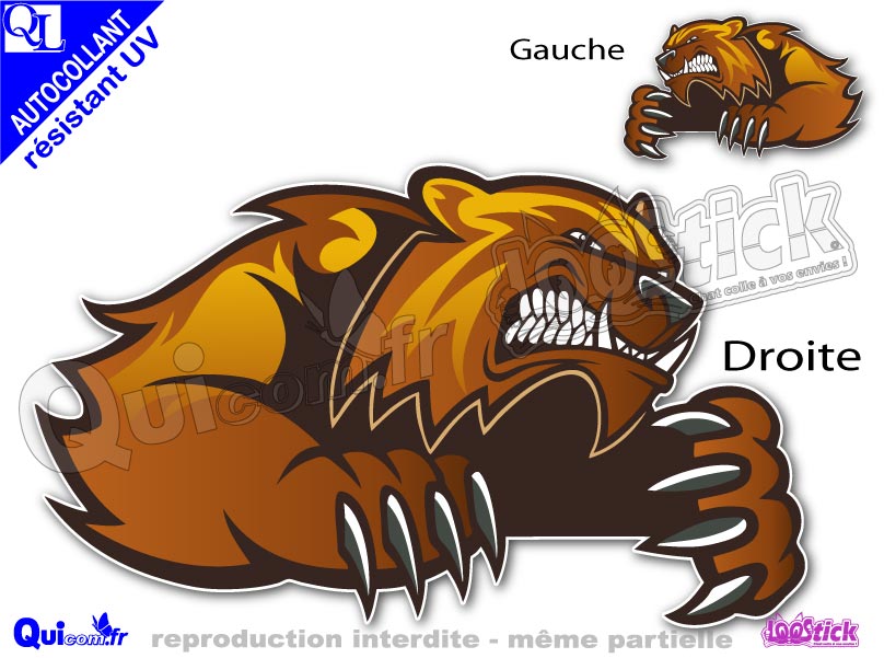 Autocollant OURS GRIZZLY COLERE sticker résistant UV