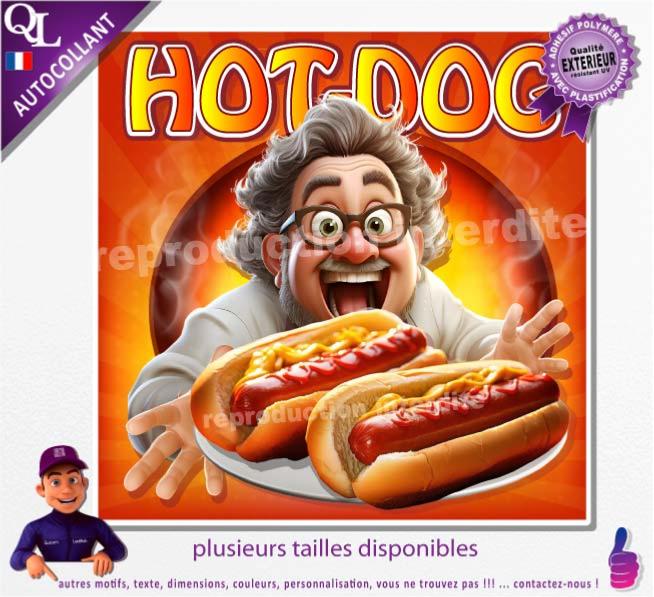 1. Sticker vinyle adhésif HOT-DOG avec un client heureux et affamé style bd