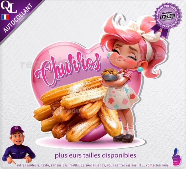 1. Sticker vinyle adhésif CHURROS COEUR avec fillette mignonne vintage