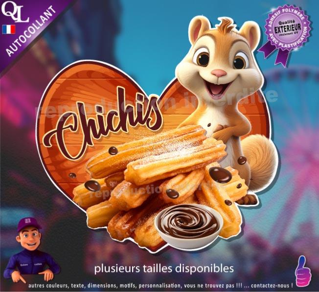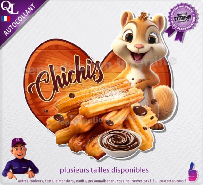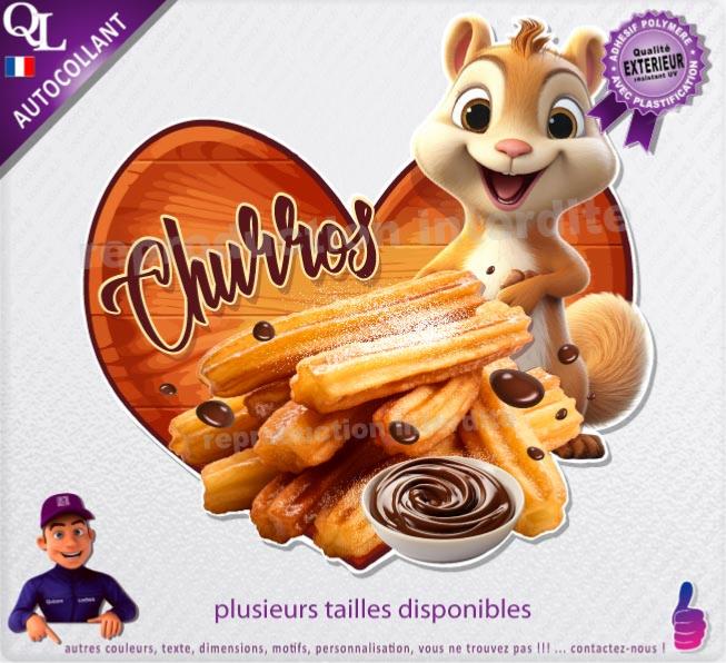 1. Sticker vinyle adhésif CHURROS ou CHICHIS CHOCOLAT écureuil mignon