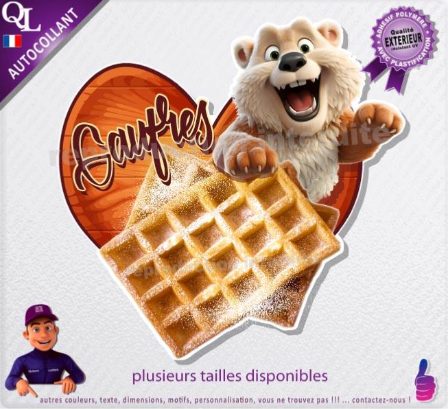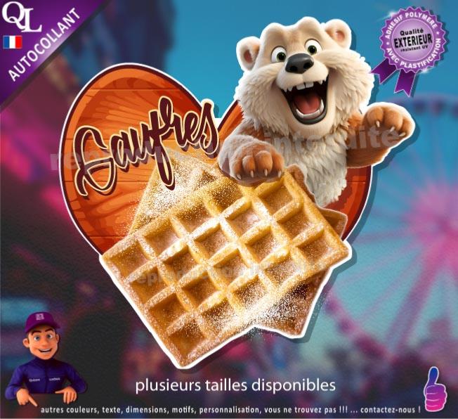 1. Sticker vinyle adhésif GAUFRES SUR UN COEUR EN BOIS avec un ours rigolo