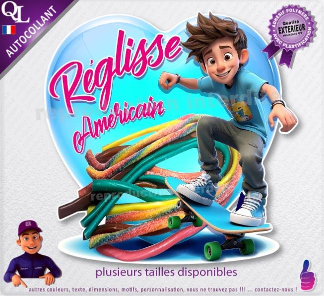 Autocollant REGLISSES AMERICAINS COEUR ado skate board 1