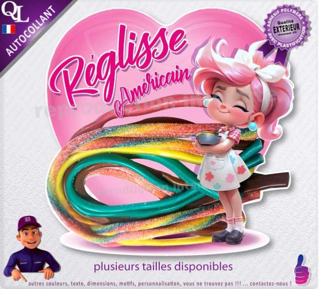 1. Sticker vinyle adhésif REGLISSE LACET AMERICAIN avec une fillette mignone
