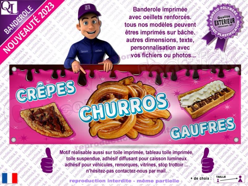 Banderole Churros Crêpes Gaufres plv stand Forain