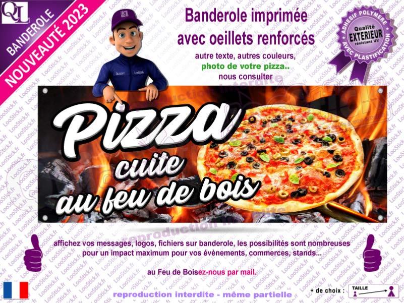 1. Bâche pvc publicitaire Pizza cuite au feu de bois affichage pizzeria restaurant food truck