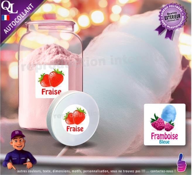 NOUVEAU les étiquettes illustrées pour indiquer le parfum de vos produits sur vos pots,couvercles, machines, présentoirs de fête foraine, confiserie, stand marchand bonbons, produits alimentaires spécifiques...