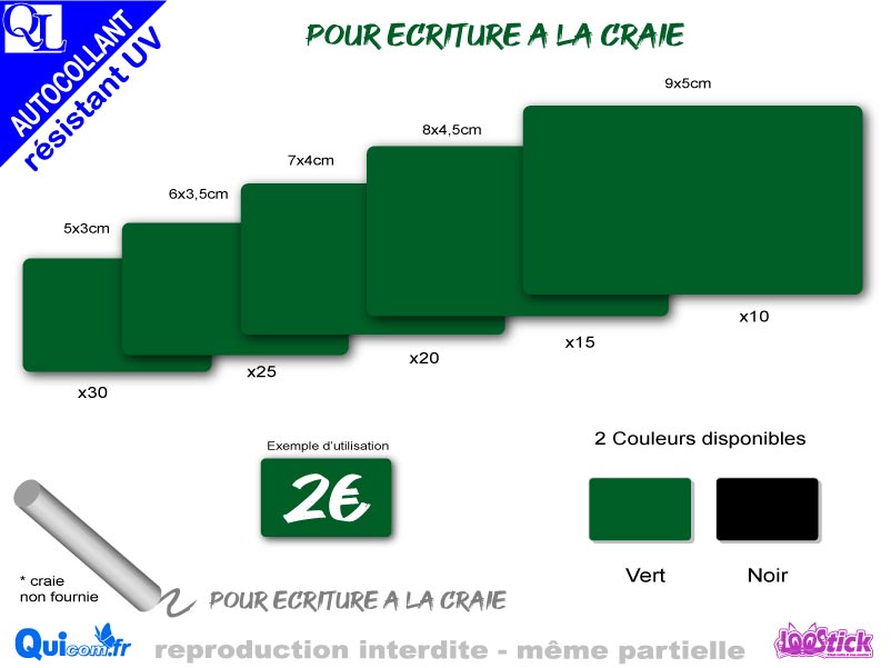 étiquettes RECTANGLES autocollantes stickers adhésif ardoisine verte ou noire pour écriture à la craie