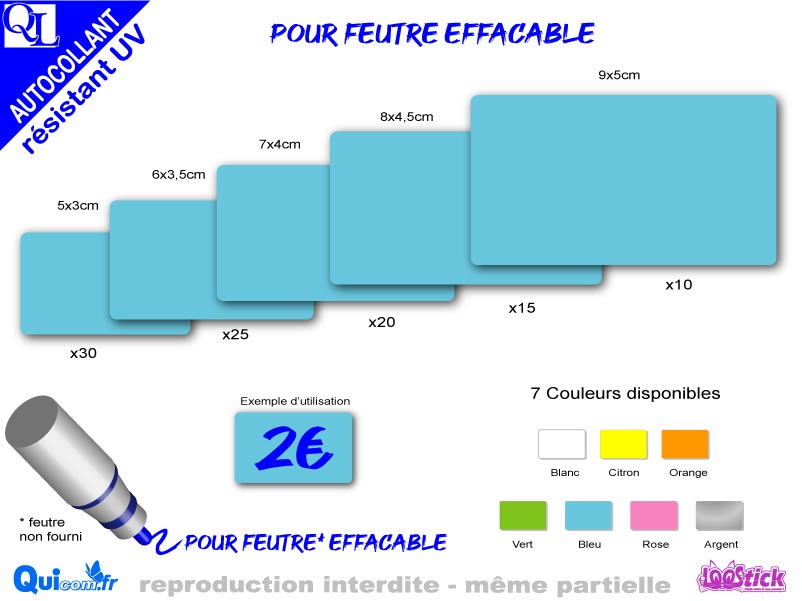 étiquettes RECTANGLES autocollantes stickers adhésif EFFACABLE